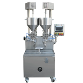 Машина оборудована высокоточными роторными насосами на базе 2-х сервоприводов. С помощью них и сенсорной панели управления можно создавать программы на различное количество крема и слоев бисквита. Наличие 2-х независимых бункеров позволяет использовать разные виды начинки (крема) для внутренних слоев и внешней обмазки.