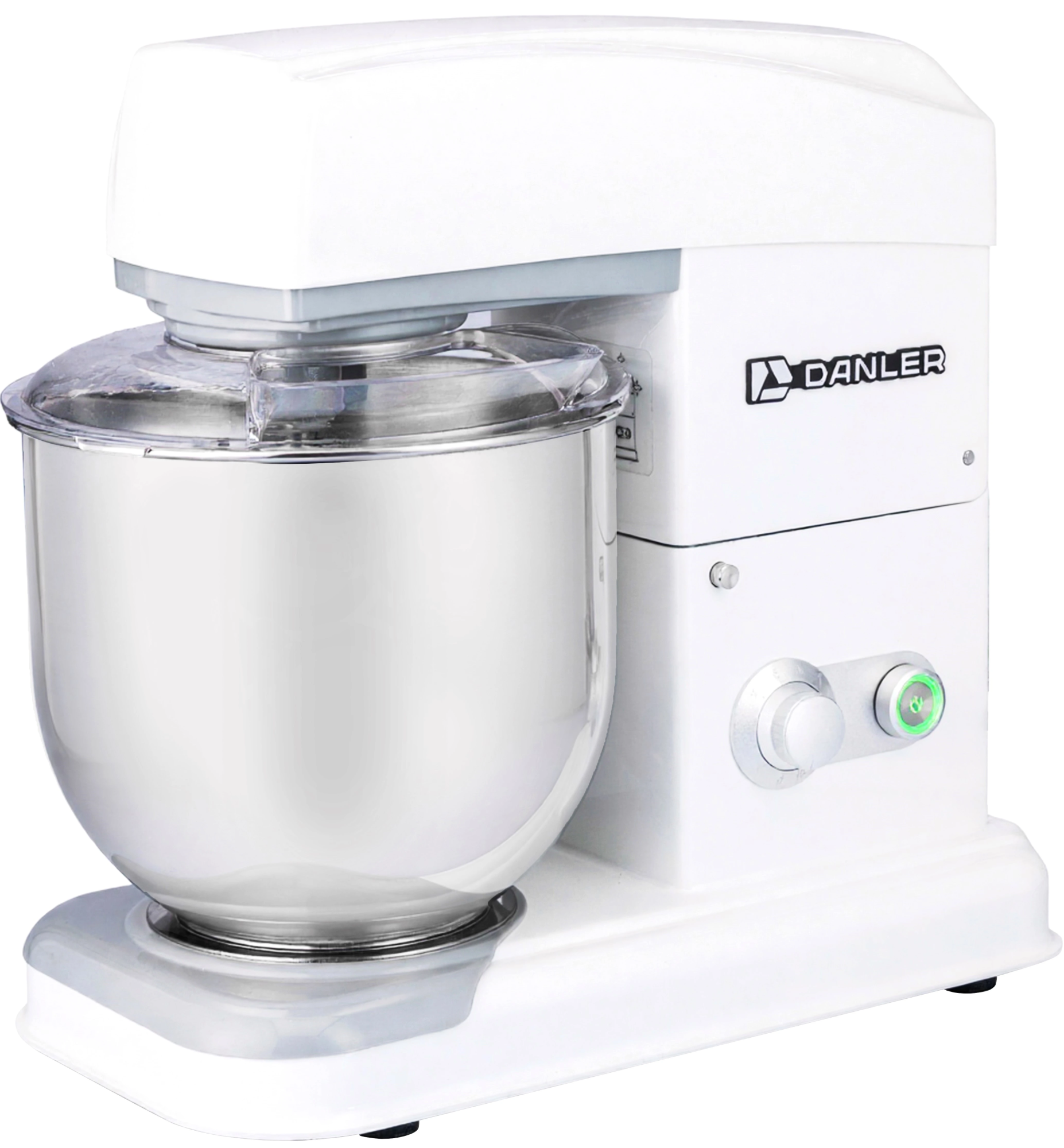 Данный планетарный миксер Danler MS-7 используется для составов низкой и средней вязкости. Машина не предназначена для постоянного замешивания теста средней и высокой вязкости максимального объема дежи, потому что вызывает ее перегрузку, т.к. передаточное отношение элементов трансмиссии рассчитано на работу с высокой скоростью (необходимую для взбивания) и высоким крутящим моментом. При подобной необходимости следует использовать миксер Danler MSR-7 соответственно c нужной насадкой, для дрожжевого или песочного теста.