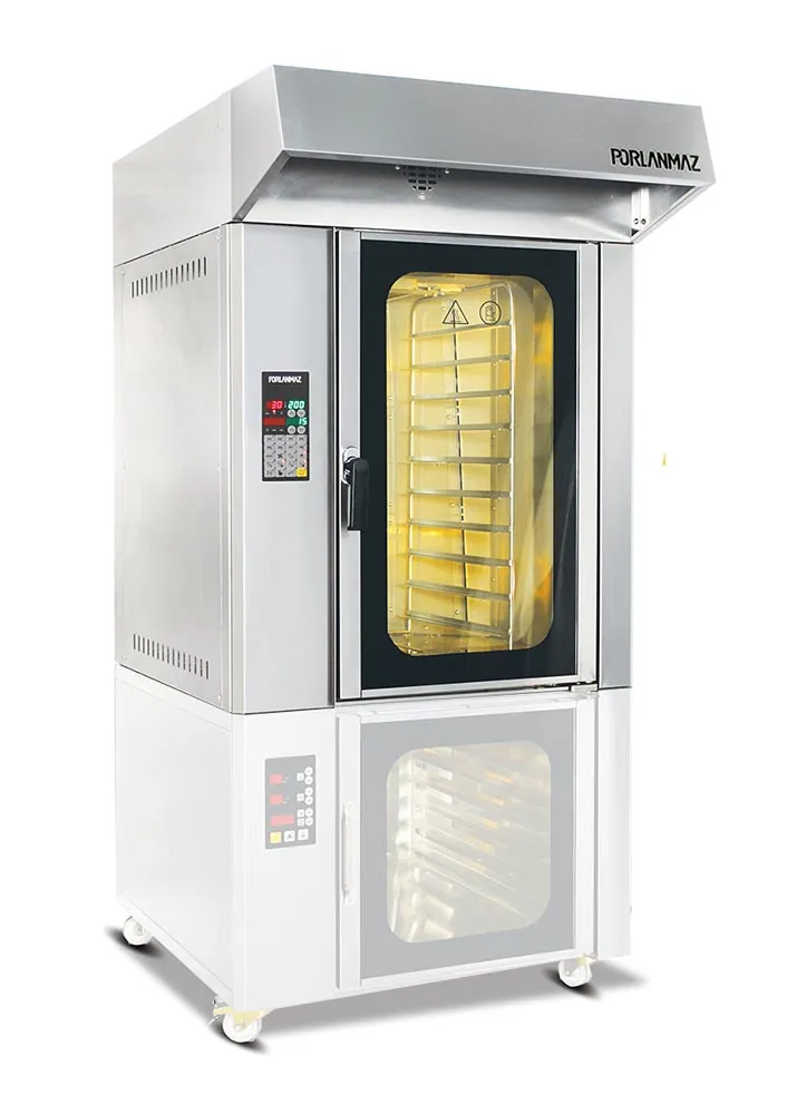 Ротационная конвекционная печь удобна для использования в отелях, ресторанах, булочных и маленьких хлебопекарнях для производства кондитерских изделий. Современная система циркуляции воздуха с вентилятором создает в камере однородный поток теплого воздуха. Нижняя часть печи (опционально) используется для расстойки теста. Полностью изготовлена из нержавеющей стали. Надежная термоизоляция помогает экономить энергию. В производстве имеются газовые и электрические модели. Опционально на печь возможно установить сенсорную панель управления.